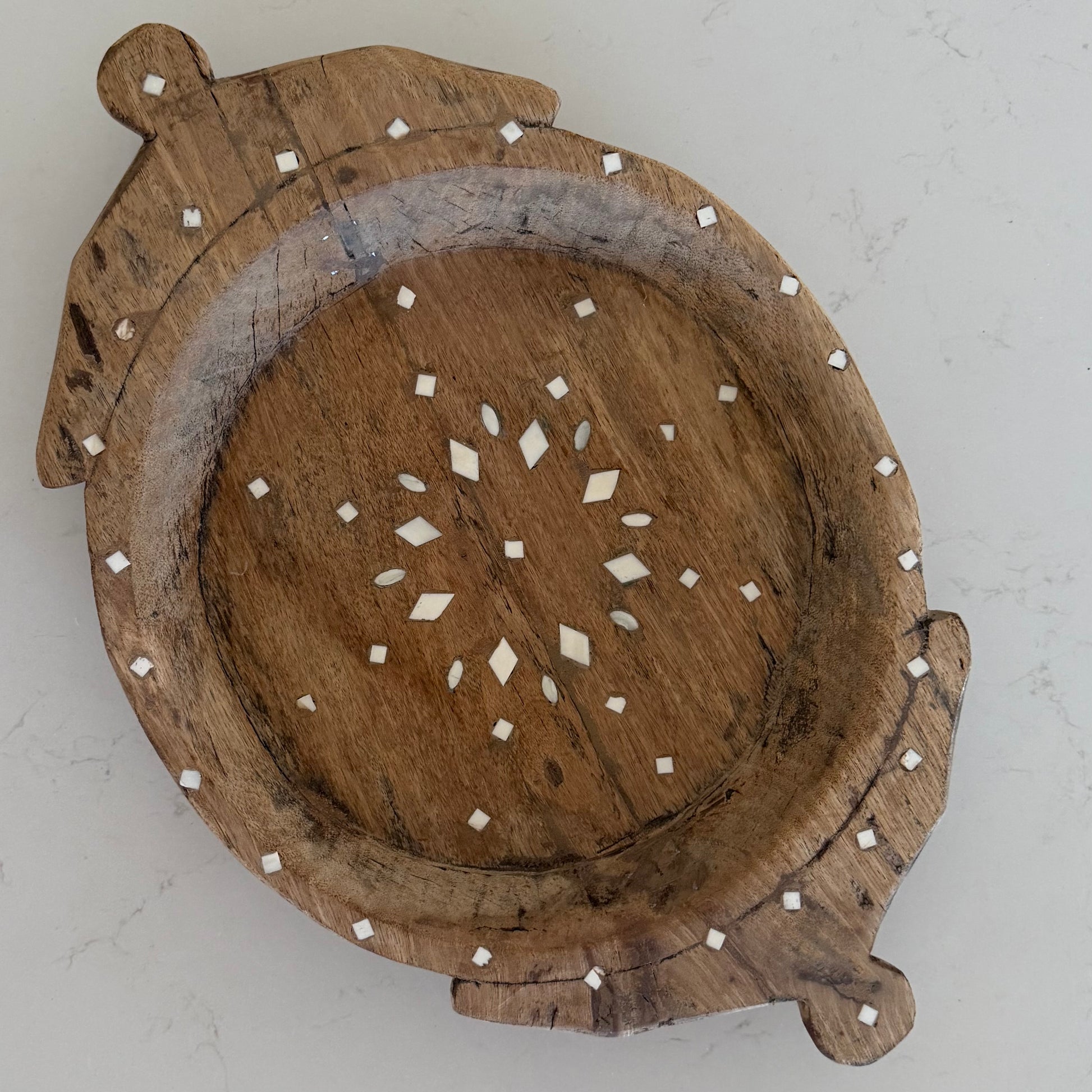 Vintage Indian Inlay chapati plate hand carved from vintage teak wood |
