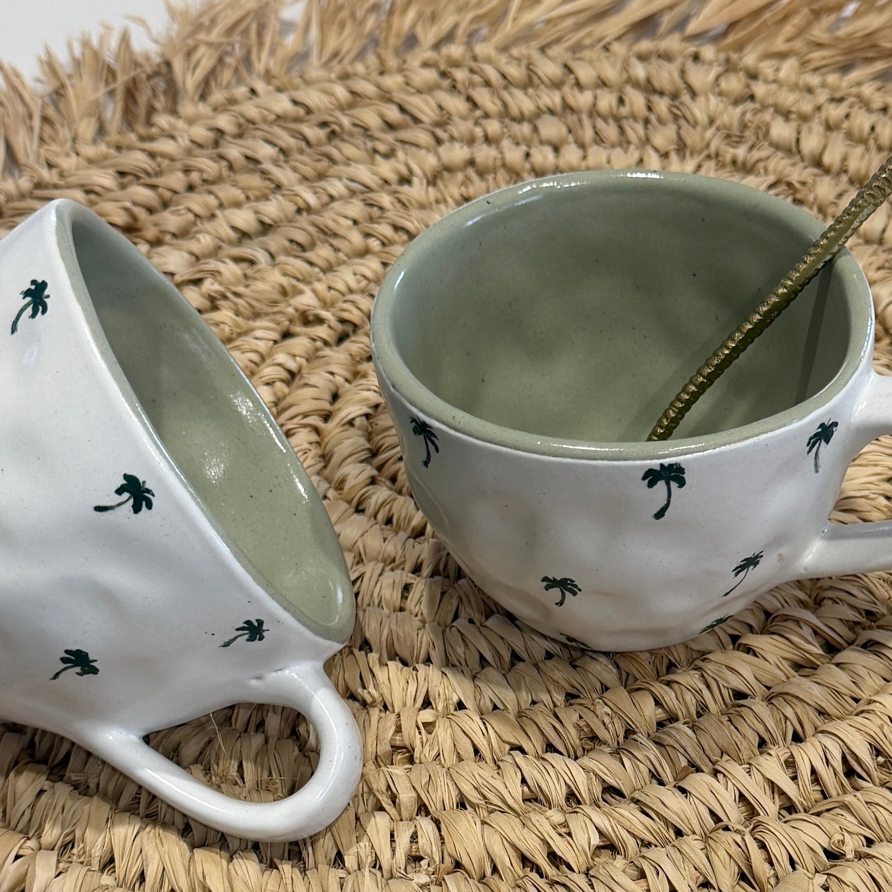 Boho Palm Tree Cup | Ceramic | Sage | Vanilla | Coastal