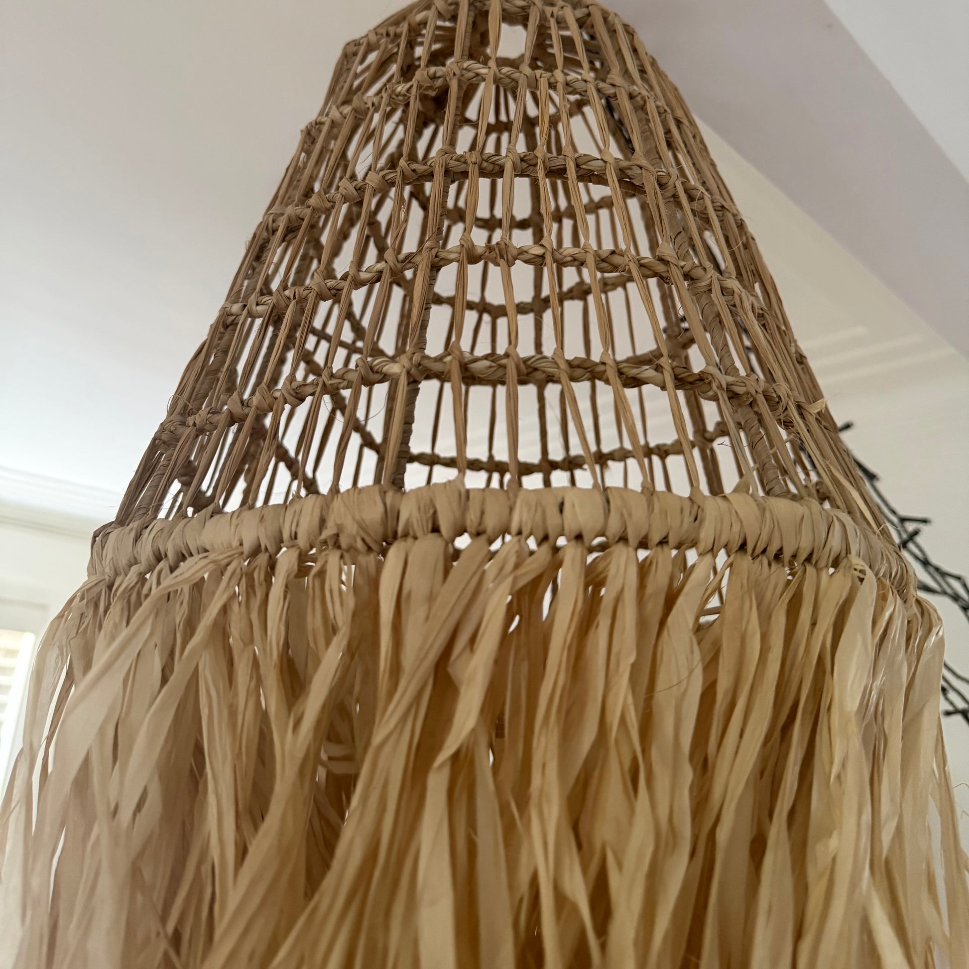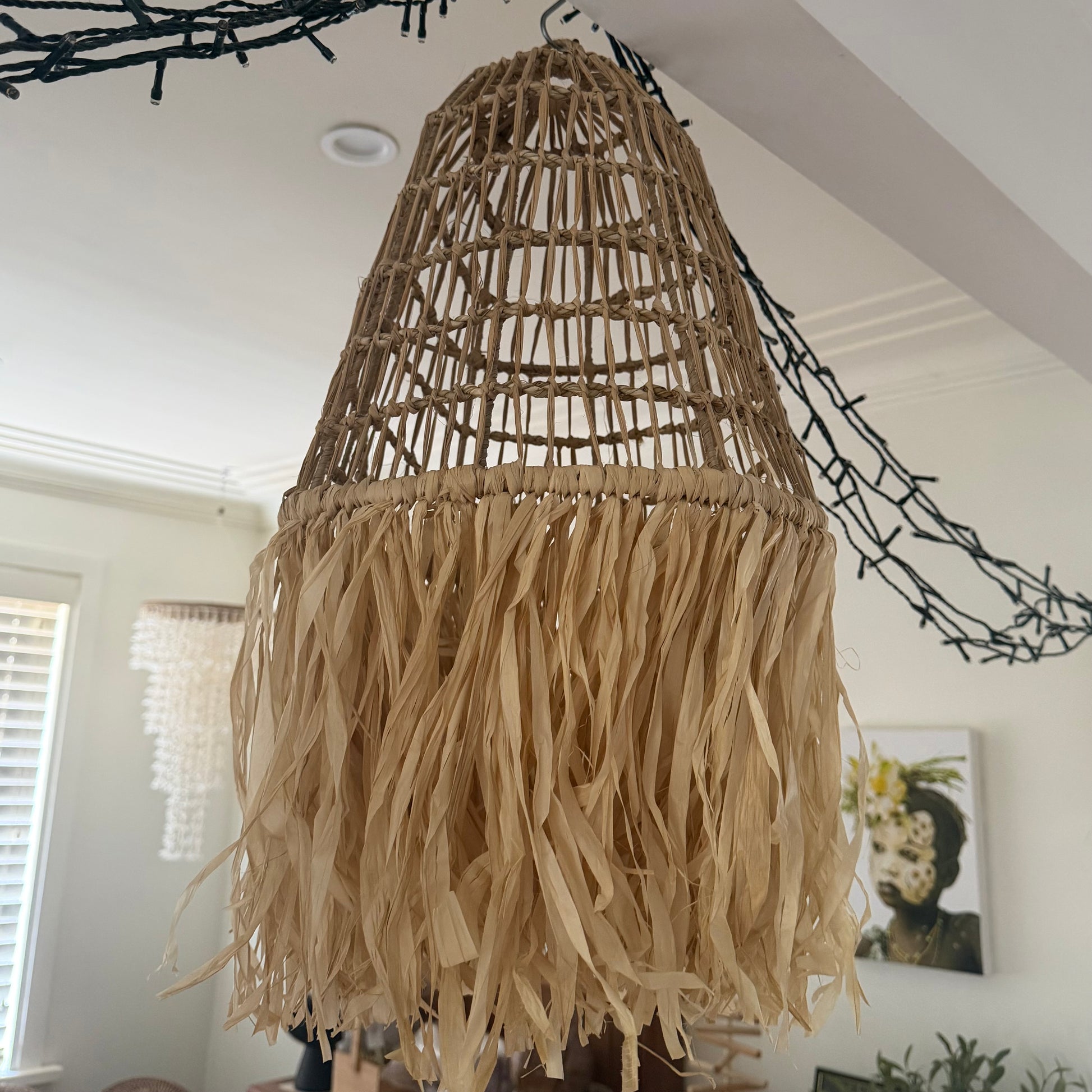 BoHo Seagrass Bleached Basket Pendant | Fringe | Small | NEW ARRIVAL