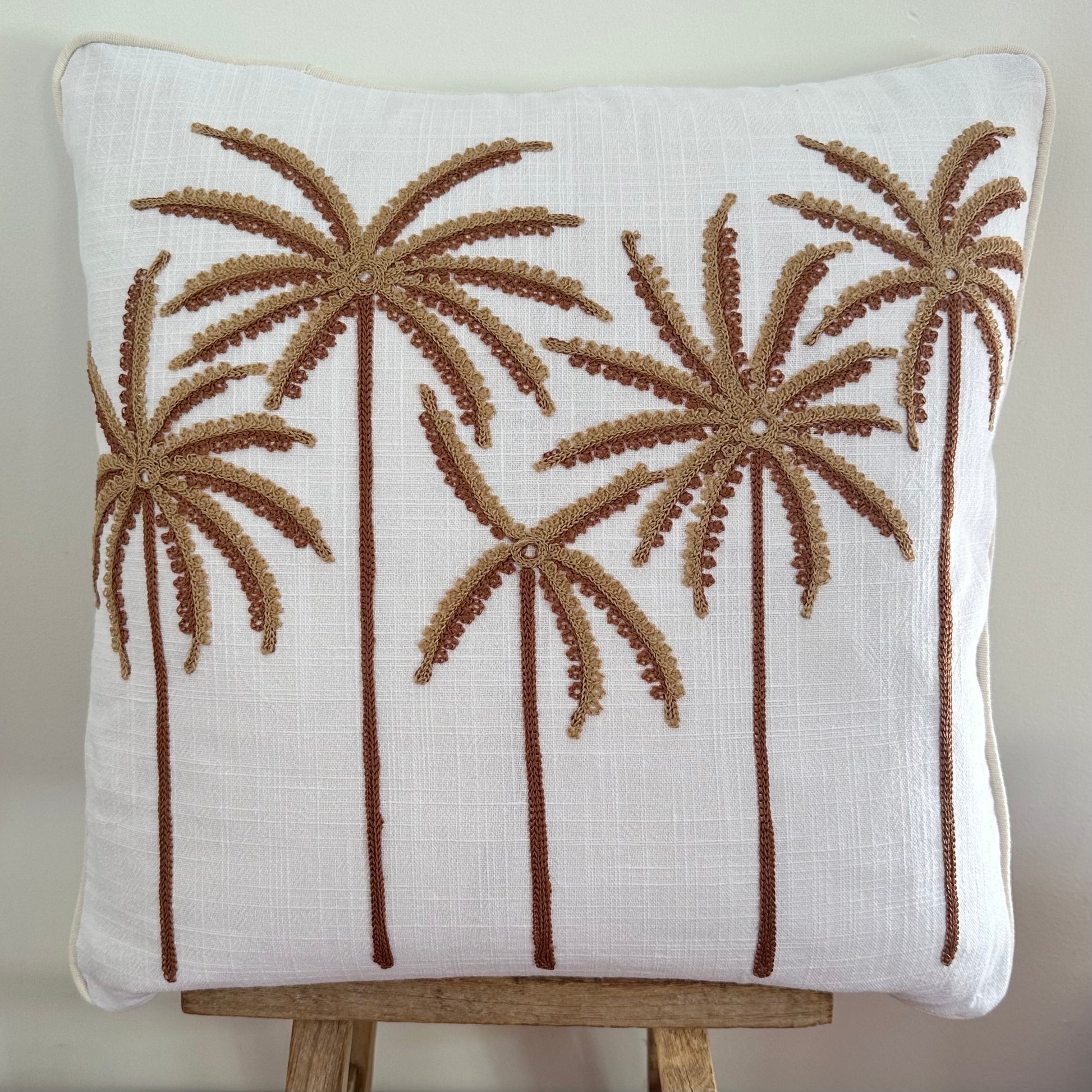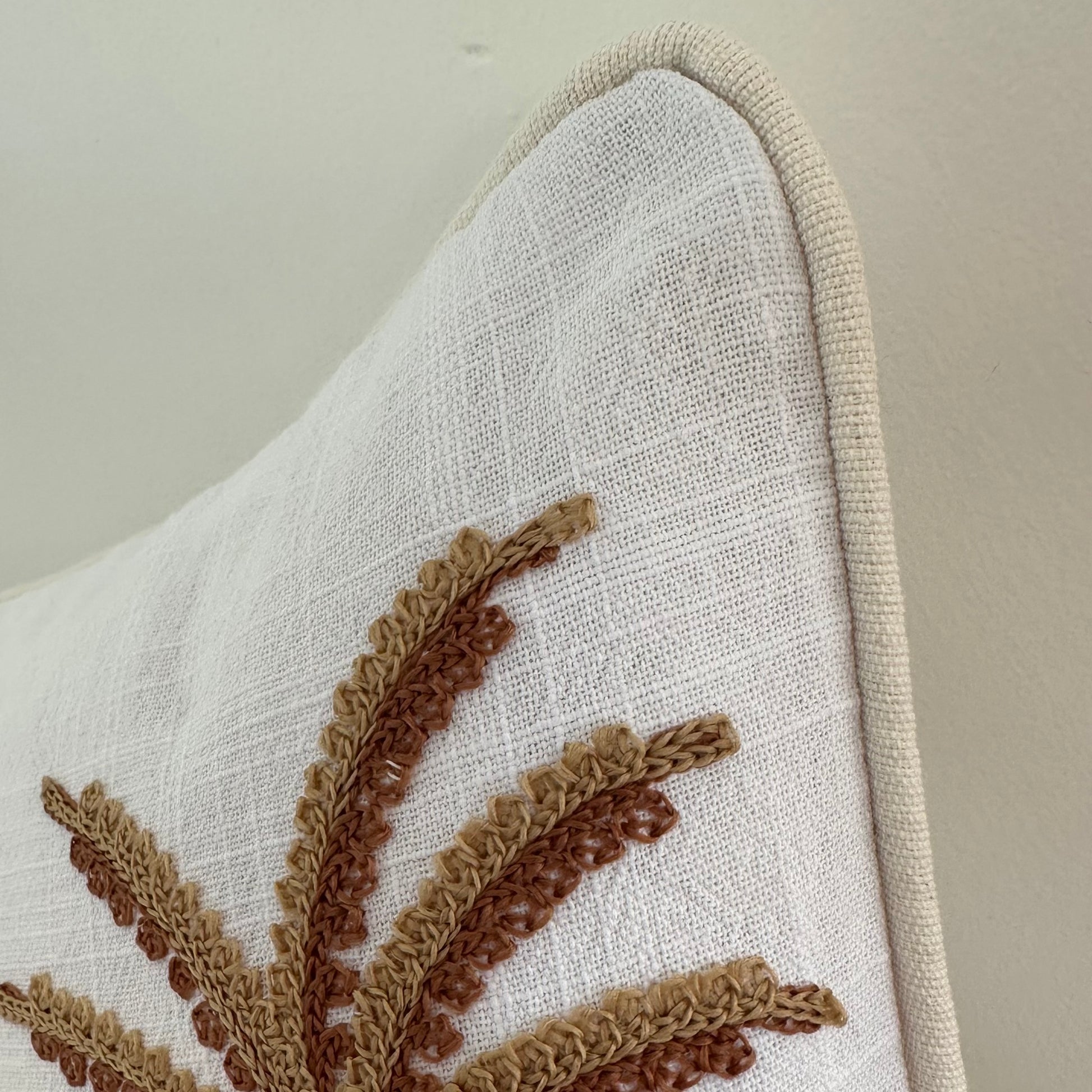 Miami Boho Palms Linen Cushion Cover | White + Latte | 45cm x 45cm